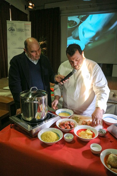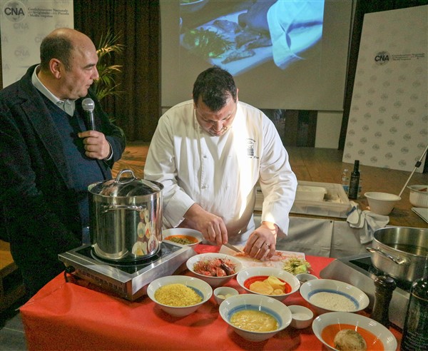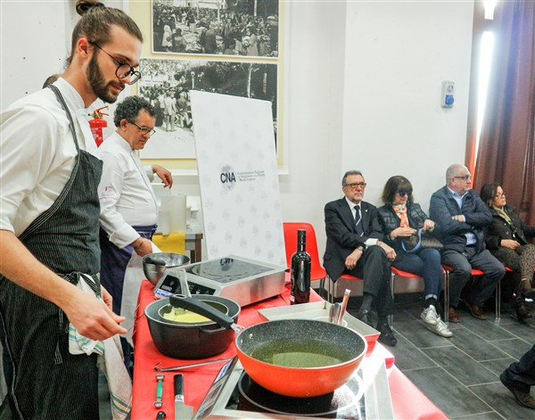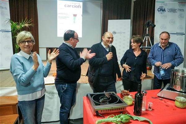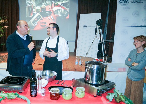La novità di questa edizione consiste nella collaborazione con CNA Imperia e l’Associazione Ristoranti della Tavolozza, che hanno trasformato la sala dell’ex stazione ferroviaria in uno speciale laboratorio di cucina. Quattro chef della città di Ospedaletti hanno proposto quattro piatti componendo un menù interamente a base di carciofi, con inedite sperimentazioni e originali contaminazioni. Lo show cooking terminato con una deliziosa degustazione finale è stato presentato dal giornalista Claudio Porchia, presidente dell’Associazione Ristoranti della Tavolozza.