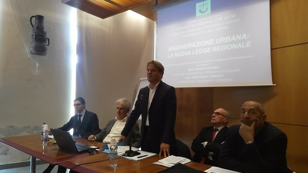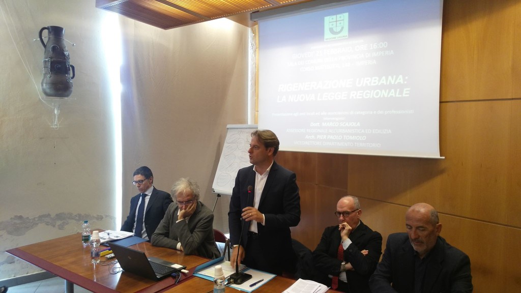 Ultima tappa, quella odierna per la presentazione della nuova legge regionale sulla rigenerazione urbana e il recupero dei terreni agricoli. In una sala dei comuni della Provincia gremita di amministratori comunali e imprenditori agricoli, l’assessore regionale all’Urbanistica Marco Scajola ha spiegato i temi del nuovo dispositivo approvato dal consiglio regionale su cui la Regione ha stanziato a oggi 700 mila euro. Era presente anche il vice direttore del dipartimento urbanistica Pierpaolo Tomiolo.