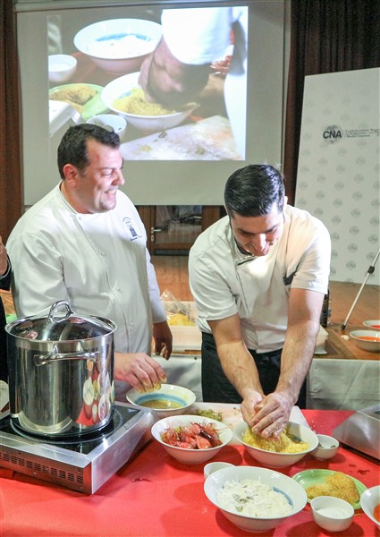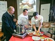Questa volta tocca ai “Gamberi Viola del Golfo ripieni di carciofi nostrani e provola in camicia di chips servizi con carciofi croccanti e marmellata di cipolle di Tropea Uovo di carciofo su fonduta di Castelmagno” presentato dallo Chef del ristorante Byblos Gennaro Vivo e dal suo staff di cucina.