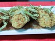 Porre i carciofi fritti nel piatto, adagiate sopra i gamberi ripieni e servite accompagnati con marmellata di cipolle di Tropea.
