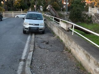“Ci spiace però constatare purtroppo – proseguono - che via Scoglio e la passeggiata a mare a ridosso della pista ciclabile sono completamente abbandonate. I marciapiedi sono distrutti dai pini che anch’essi sono pericolanti e molto pericolosi, l’asfalto della via è pieno di rattoppi e buche pericolose, una delle quali vicina alla griglia in fondo che ormai è sfondata dal passaggio delle auto, sull’aiuola del parcheggio affianco alla pista ciclabile esiste una pedana in legno non conclusa ed abbandonata da anni, i giardini della passeggiata a mare diventano una enorme pozzanghera quando piove, piena di fango, creata dal passaggio degli automezzi da lavoro che fanno manutenzione agli impianti esistenti della fognatura e del verde, a causa della mareggiata la scogliera è molto compromessa e molti detriti sono presenti lungo la passeggiata, la ringhiera è stata sfondata dalle onde ed è tutta arrugginita, l’illuminazione è inesistente e le panchine sono ormai tutte corrose dal salino”.