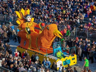 Un'altra domenica con una mare di pubblico per la sfilata della 'Fete du Citron' a Mentone. In tanti, tra italiani, francesi e turisti provenienti da altre nazioni europee, per seguire l'appuntamento domenicale con la festa.