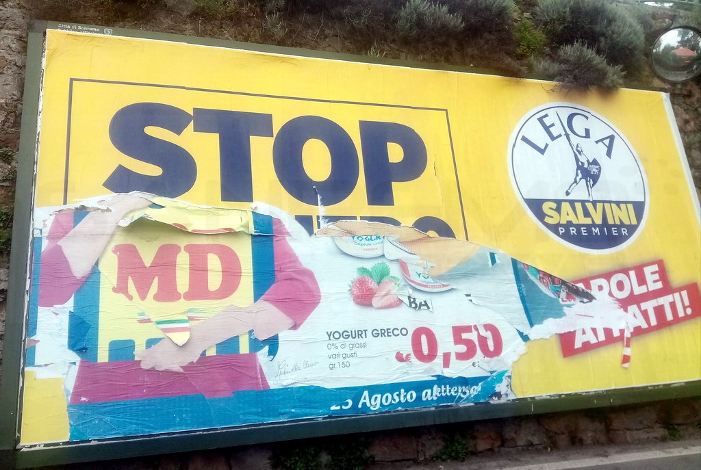 Una pubblicità elettorale strappata e si scatena la protesta. Si tratta di un manifesto posizionato in corso Inglesi a Sanremo (nella foto) dalla Lega matuziana, per le elezioni Amministrative del prossimo maggio.