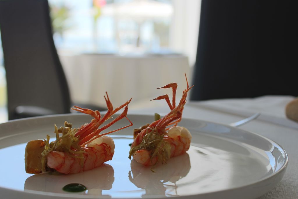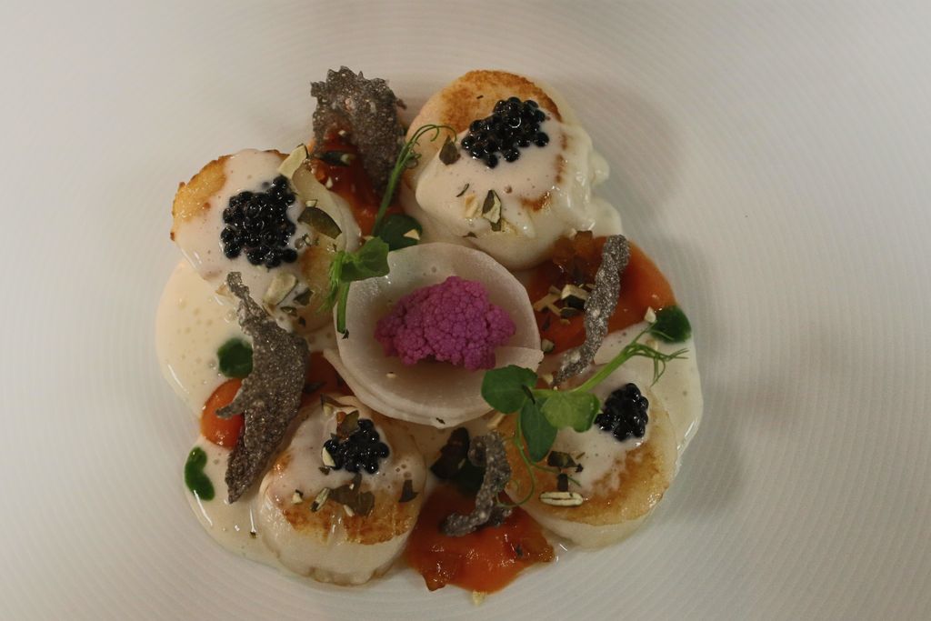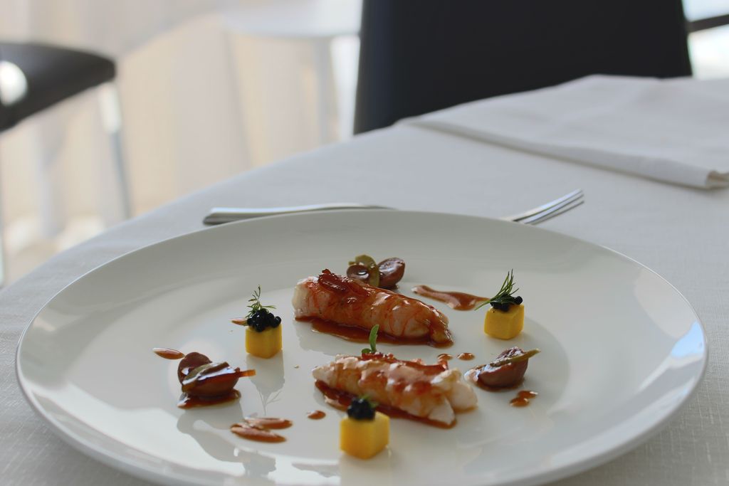 “Ricciola cruda, vellutata di porri, croccante di quinoa, passion-fruit, elementi di forza che uniscono un piatto locale ad un tocco esotico, studiato per equilibrare acidità e dolcezza”.