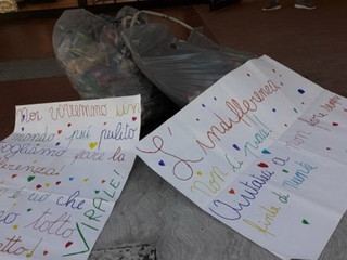 La presenza dei ragazzi del Liceo è stata molto utile sia in termini di forza lavoro, sia di costruzioni di empatie e condivisioni tra pari. Nello stile che la contraddistingue, la scuola ha investito molte risorse anche in termini di sviluppo del tema in Lingua Straniera Inglese, attraverso la riqualificazione degli ambienti come fossero quelli di un College e la realizzazione di cartelli ed indicazioni in Lingua Inglese. Un messaggio quindi che parte dal nostro domani, i nostri bambini, che sanno farsi portavoce di un discorso così complesso con la purezza e la semplicità che li rende unici.