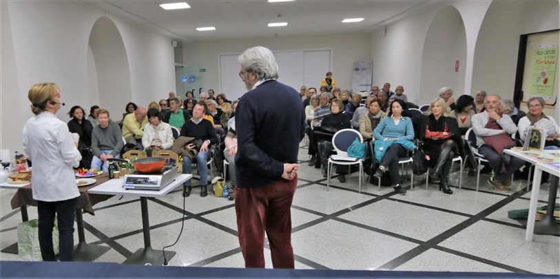 Ore 16,00 "Fiori e fornelli", dimostrazione floreale di Paola Zattera Dagnino, insegnante, dimostratrice e giudice internazionale dell'EDFA di Genova.