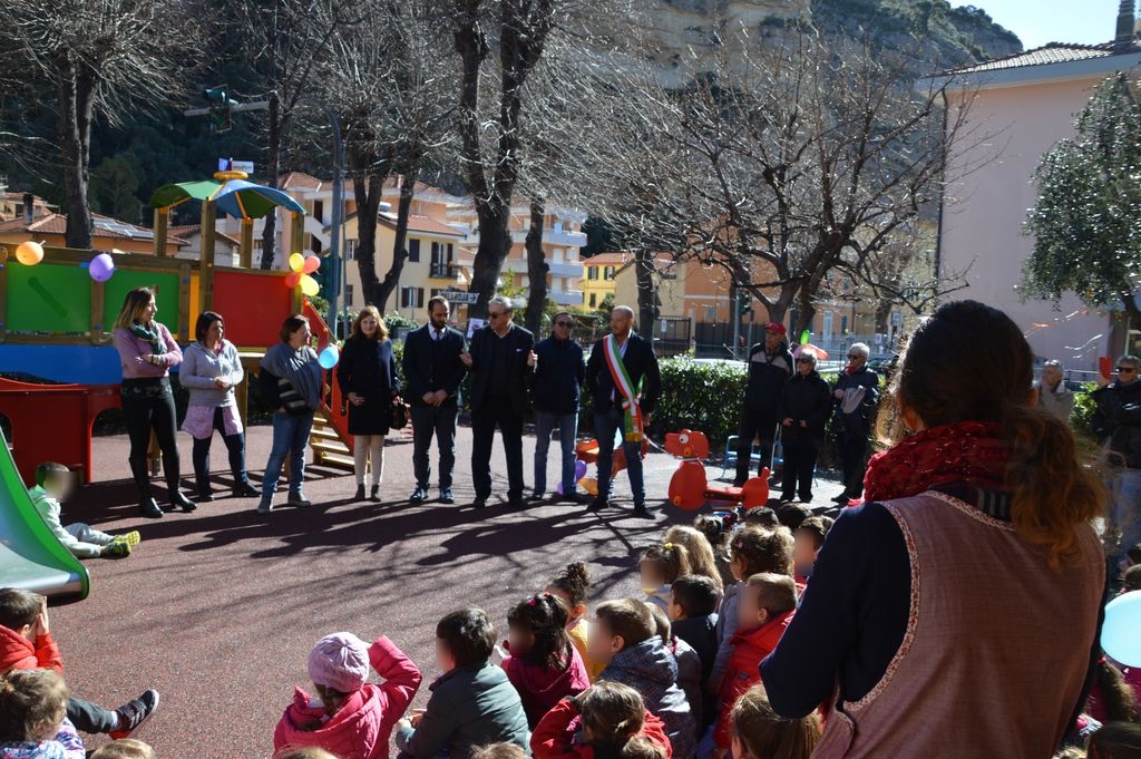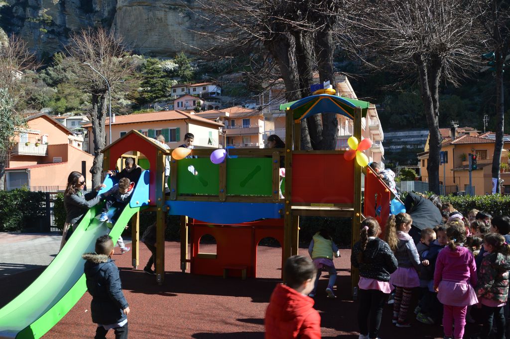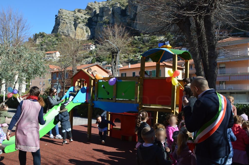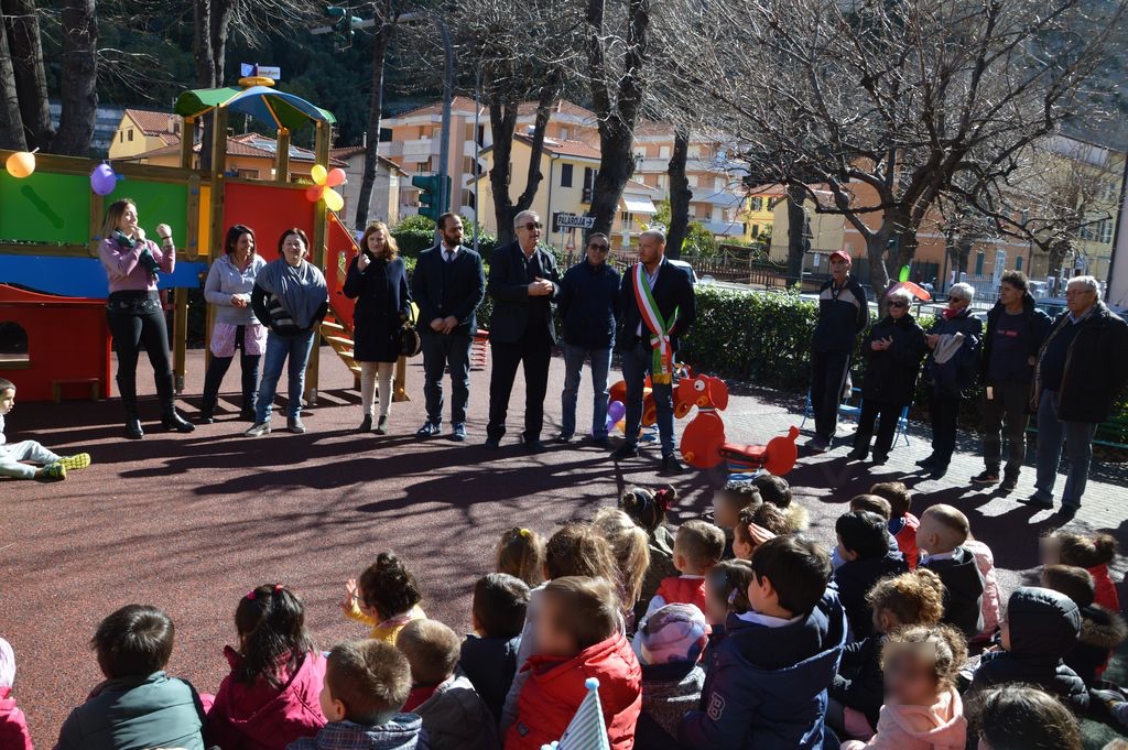 Grande festa questa mattina alla scuola dell'infanzia di Roverino a Ventimiglia per l'inaugurazione della nuova area giochi. Circa 18 mila euro il finanziamento predisposto da Coop Liguria e un grande impegno delle maestranze comunali hanno reso possibile questo intervento che, per i più piccoli, significa un nuovo spazio in cui poter giocare in tutta sicurezza.