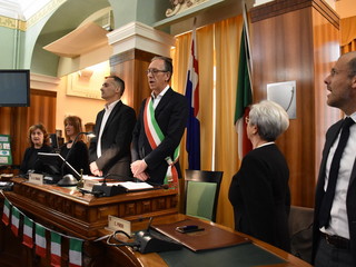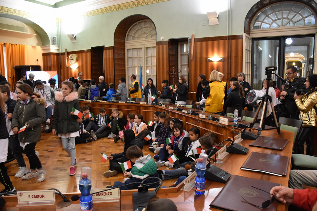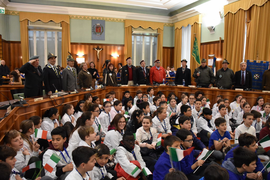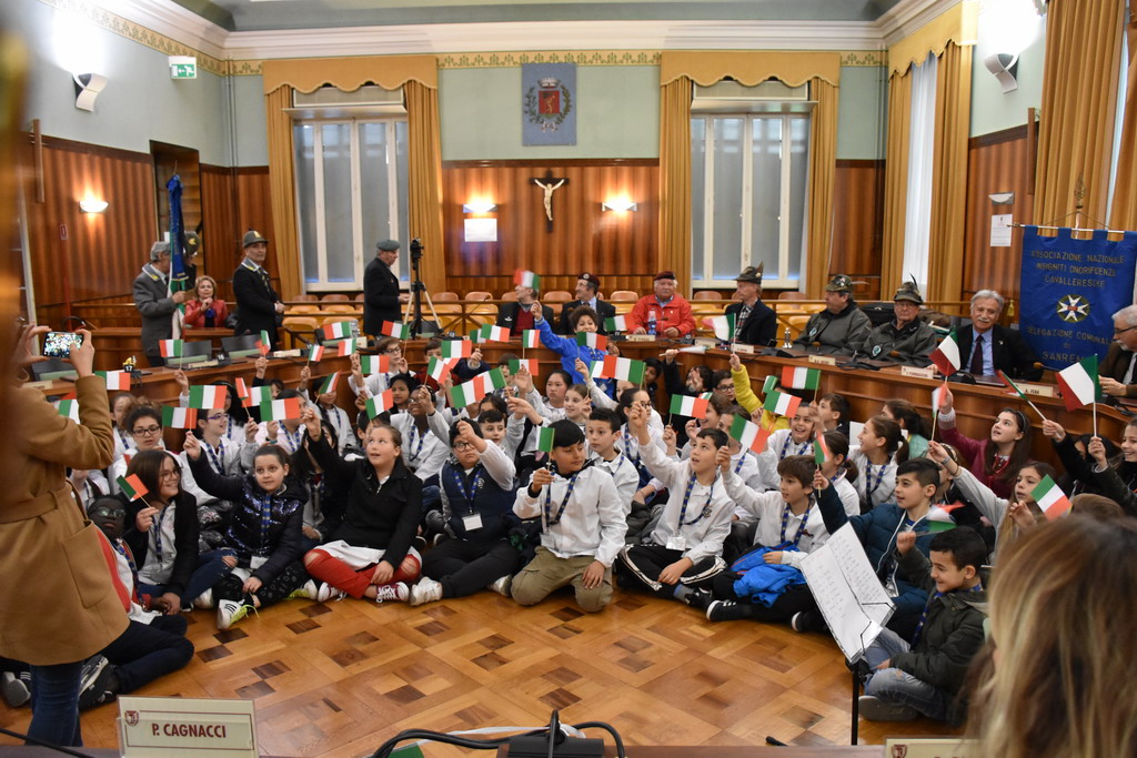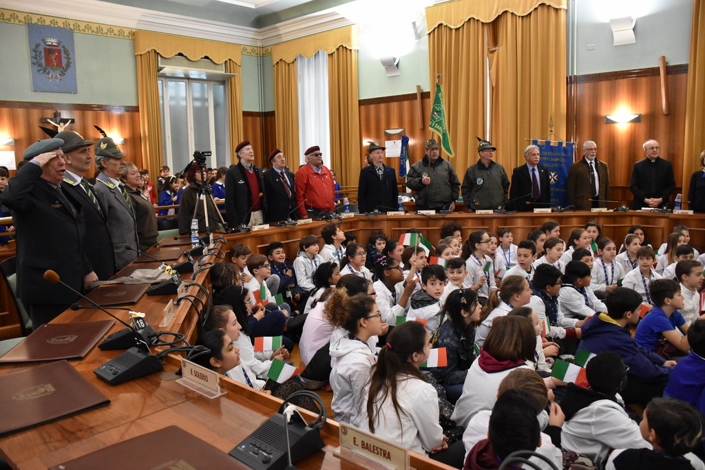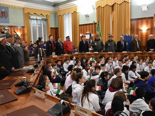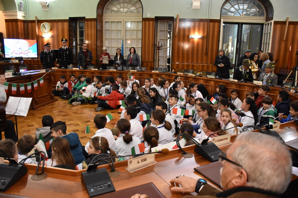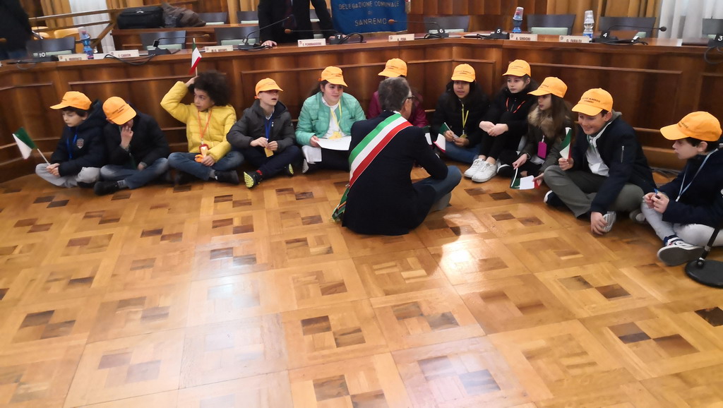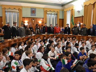 250 alunni delle ultime delle scuole elementari di Sanremo, accompagnati dalle loro insegnanti, hanno ricevuto in dono il Tricolore italiano ed una copia della Costituzione, nella classica cerimonia organizzata nella sala consiliare del Comune.