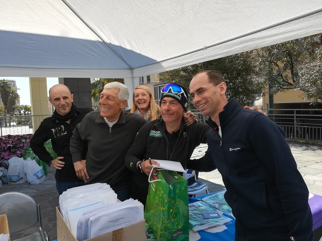 A poche ore dalla chiusura delle iscrizioni, aperte fino alle 19 di oggi presso il desk allestito nel Villaggio in piazza Colombo, si sta avvicinando a 600 il numero dei partecipanti alla Granfondo Sanremo – Sanremo “La Classicissima”. Un grande risultato che testimonia anche il valore turistico e promozionale dell’evento (circa l’80% degli iscritti sono turisti, molti dei quali stranieri). Un’importante promozione per il territorio arriverà anche dallo speciale sulla Granfondo che successivamente sarà trasmesso su Sky Sport. Grande pubblico oggi al Villaggio dove sono presenti stands con materiale tecnico specializzato degli sponsor. A portare oggi sul palco il saluto agli iscritti è stato anche il delegato del Coni di Imperia Alessandro Zunino. Simpatica la presenza di tre ciclisti che, con biciclette e abbigliamento d’epoca, sono giunti da Milano. Il presidente dell’UC Sanremo Fabrizio Fusini li ha voluti sul podio per tributargli l’applauso di tutte le persone presenti in piazza Colombo.
