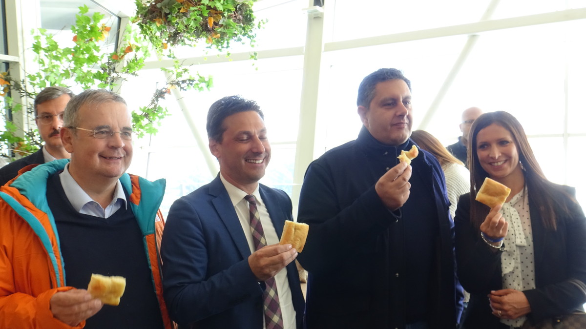 All'evento hanno partecipato il commissario di Agenzia “In Liguria” Pietro Paolo Giampellegrini; Giovanni Toti, Presidente della Regione Liguria; Emily Rini, Presidente del Consiglio regionale della Valle d'Aosta; Giovanni Berrino, assessore al Turismo Regione Liguria; Matteo Viacava, sindaco di Portofino; Laurent Viérin , assessore regionale al Turismo VdA; Edoardo Rixi, viceministro delle infrastrutture e dei trasporti; Stefano Miserocchi, sindaco di Courmayeur e Federica Bieller, presidente di SkyWay Monte Bianco. "La Valle d'Aosta - ha aggiunto Vierin, rivolgendosi ai rappresentanti dell'amministrazione ligure - è da sempre molto legata alla Liguria. Ricordo il gemellaggio tra il Cristo delle vette e il Cristo degli abissi. Voi siete il nostro mare e noi siamo la vostra montagna. Oggi vi ospitiamo con i vostri eccellenti prodotti nel massiccio del Monte Bianco, quest'estate vorremo essere a Portofino a presentare la nostra offerta enogastronomico e le nostre eccellenze ambientali".