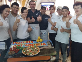 - pizza "La Chiesetta" che aveva partecipato che aveva partecipato al Campionato del Mondo del 2017, dove aveva ottenuto la Menzione Speciale "Per la tipicità degli ingredienti locali", oltre ai vivi complimenti della Giuria per la marinatura del pescato, ingrediente principale. Ecco gli ingredienti: Impasto e salsa di pomodoro con ricetta esclusiva della Pizzeria Sant'Ampelio, Mozzarella Fior di Latte, Olive Taggiasche, Burrata, Carpaccio di Palamita locale, marinata in emulsione di succo e scorza di Limone non trattato, Olio Extravergine di Oliva, Cipolla di Tropea, Sale e Pepe, Pomodorino ciliegino, Insalata Rucola.