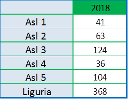 Tabella: soggetti in carico per Asl al 31.12.2018. Valori assoluti