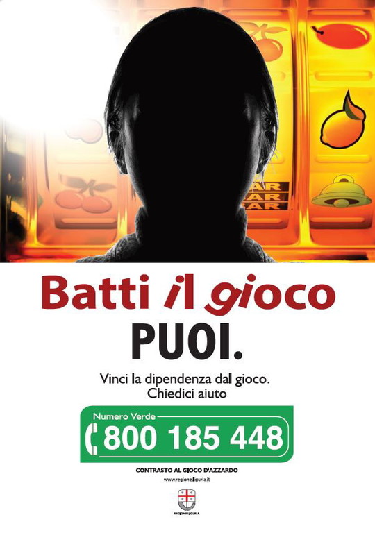 Prende il via, prima sul territorio genovese e dalla prossima settimana in tutta la Liguria, la campagna informativa regionale “Batti il gioco. Puoi”. Cuore dell’iniziativa è il numero verde 800 185 448 dedicato alle problematiche connesse al gioco d’azzardo patologico: è gratuito da telefono fisso e cellulare, attivo dal lunedì al venerdì, dalle 08.00 alle 18.00.