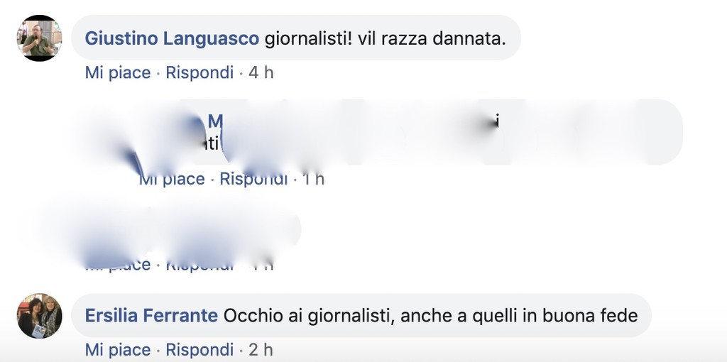 In particolare si sono distinti per la levatura dei propri commenti l'ex militante del Pd di Imperia Giustino Languasco, nonché marito dell'ex coordinatrice di circolo di Porto Maurizio Graziella Battistin, ed Ersilia Ferrante, avvocato che ha spesso difeso i No Border nelle note vicende degli ultimi anni. Languasco ha commentato il post di Tubere scrivendo “Giornalisti! Vil razza dannata” (citando il 'Rigoletto'), Ferrante ha rincarato la dose generalizzando e rispondendo “Occhio ai giornalisti, anche a quelli in buona fede”.