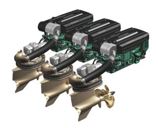 Il design innovativo del sistema presenta un set di doppie eliche controrotanti rivolte verso prua che garantiscono un’ottima efficienza propulsiva. Con i pod orientabili individualmente, il sistema IPS Volvo Penta offre maneggevolezza, prestazioni superiori e consumo di carburante, emissioni e rumorosità inferiori rispetto ad un'installazione tradizionale in linea d’asse.