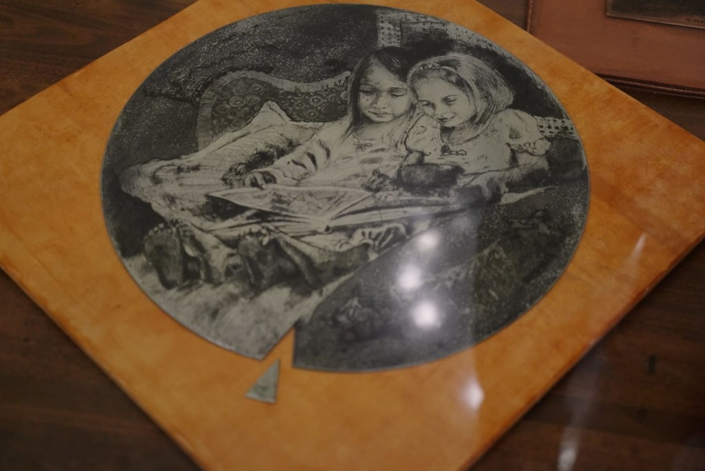 Pur rimanendo attraccata ad un realismo puro, supportato anche dalla tecnica incisoria, nella produzione di Elena Frontero emerge un aspetto quasi magico, forse meglio dire fiabesco, che riporta subito alle letture di quelle favole fondanti l’essere l’adulto in ognuno di noi.