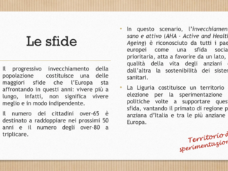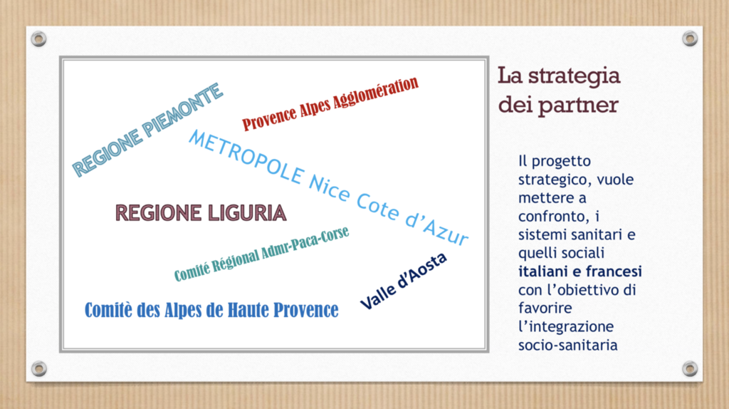Oggi, a seguito dell’approvazione dei primi due progetti (Anziani/Seniors e Welfare/Proximité) Regione Liguria con i suoi enti attuatori, Asl 1 imperiese e Università di Genova, presenterà ai comuni interessati le iniziative innovative, in termini di servizi e apparecchiature, che saranno realizzate sul territorio.