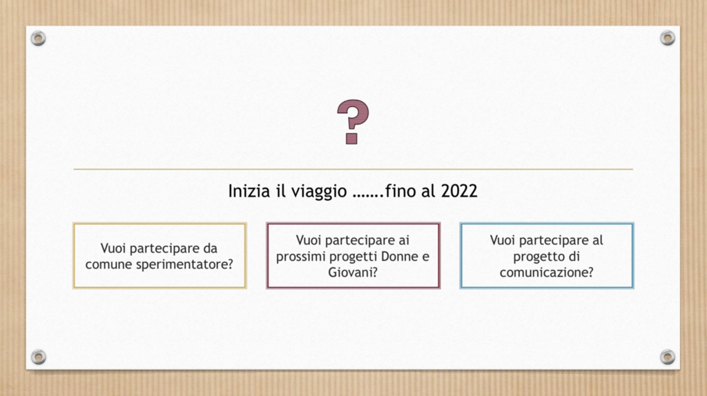 Progetto donne: si basa sui valori della Carta Europea per la Partita e l’Uguaglianza degli uomini e delle donne al fine di raggiungere la parità costruito su diversi assi come famiglia, salute e lavoro.