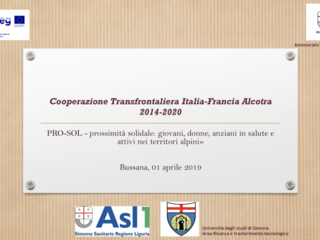La Regione Liguria ha presentato oggi nella sede Asl1 di Bussana l’avvio dei due progetti del piano di prossimità solidale “Pro-sol”, finanziati nell’ambito del Programma di cooperazione transfrontaliera Italia Francia Alcotra 2014-2020. Presenti alla conferenza stampa i responsabili del progetto insieme al direttore dell’Asl1 Marco Damonte Prioli e all’assessore regionale alla Sanità Sonia Viale.
