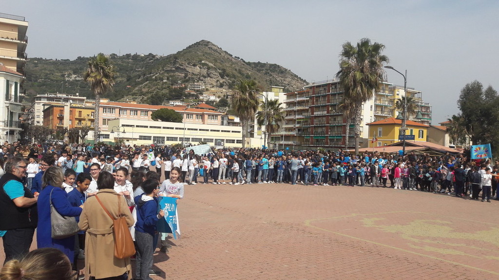 In occasione della giornata mondiale della consapevolezza sull'autismo, gli alunni delle scuole primarie del 1 istituto comprensivo di Ventimiglia hanno organizzato un festoso ‘Flash Mob’ presso il belvedere del Resentello.