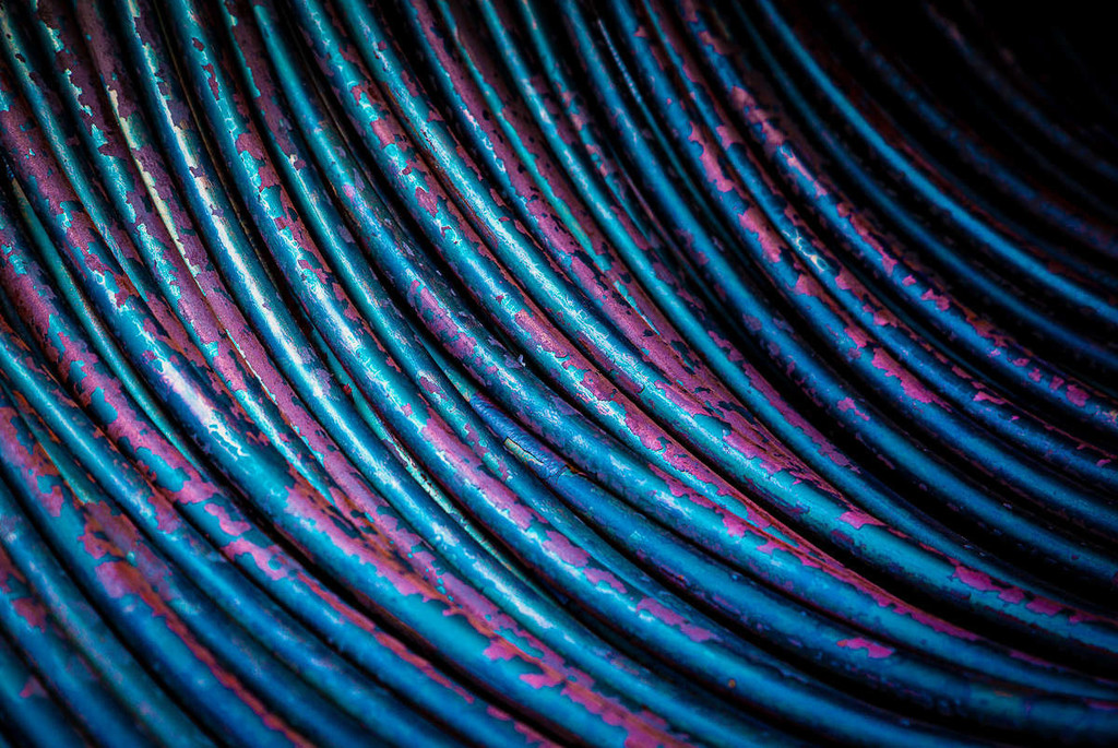 In tutti i lavori in mostra, la superficie è la porta di ingresso principale di una complessa stratificazione di senso e di significato. Nelle modulazioni materiche di Patti, dove una ricorrente forma circolare crea armoniose e dinamiche texture (Noise) e nelle vibrazioni del colore originate dal “suono fluttuante” dei Floating Noise, si sedimentano memorie che, nell’atto creativo che alterna sovrapposizione e sottrazione, subiscono un inevitabile processo di trasformazione dato dal tempo che contribuisce a definire una nuova identità, suggellata dalla resina che ne diviene sua custode. Nelle opere fotografiche della Roda – sia nel dettaglio micro di un materiale inerme colto nella sua unicità sia nel funzionamento di un macchinario colto nell’apice della sua funzionalità – si susseguono immagini potenti, la cui forza espressiva è amplificata visivamente dal plexiglass che le ricopre, dove una matassa di filo arrugginito rivive in uno scatto dai toni glamour, un ordinato assemblaggio geometrico diviene architettura astratta, una fase industriale diviene scenario surreale ammantato di misterioso fascino.
