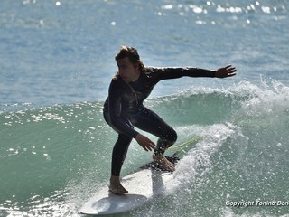 Una domenica sulla cresta dell'onda ai Tre Ponti. Complice l'onda lunga e nonostante le condizioni climatiche non ottimali ieri Sanremo è stata di nuovo un punto di riferimento per gli amanti del surf.