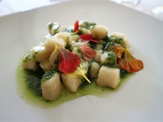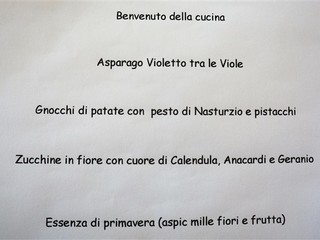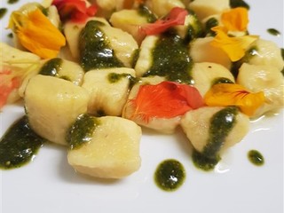 Come primo piatto nel menù sono previsti dei deliziosi gnocchi di patate abbinati ad un pesto di nasturzio e pistacchi, dove il piccante del nasturzio viene domato dal dolce della patata e rilanciato dal gusto inconfondibile del pistacchio. Davvero un piatto degno di lode.