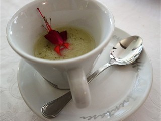 Il dolce porta il nome della stagione, un richiamo alla stagionalità rigorosa della cucina, “Essenza di primavera”, ed è un aspic rosato per l’utilizzo dei petali di rosa e che racchiude come uno scrigno piccoli e croccanti frammenti di frutta e altri petali di fiori. Bello da vedere e buono da mangiare, ideale per chiudere il pasto e godere della vista dei fiori fino alla fine.