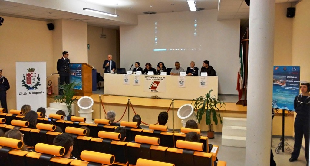 Oggi ad Imperia, nella Sala Auditorium del Museo Navale, si è tenuta quindi la Giornata del Mare alla presenza di circa 100 studenti di alcune Scuole primarie e secondarie Superiori di Imperia e di Diano Marina, che hanno assistito interessati alle relazioni istituzionali della Guardia Costiera di Imperia e della Soprintendenza Archeologica regionale – Dott. Marco Danielli, oltre che di quelle presentate da associazioni scientifiche, professionali e culturali molto attive nel territorio per iniziative tese a valorizzare le risorse ambientali del Santuario dei Cetacei (Informare – Dott.ssa Monica Previati, Costa Balneare – Dott. Davide Ascheri, Legacoop – Sig.ra Lara Servetti e Associazione Marinai d’Italia – C.V. (CP) r Guido Ferraro). Presenti all’evento anche il sindaco della Città di Imperia On. Claudio Scajola e gli assessori Dott.ssa Laura Gandolfo assessore all’Ambiente ed eduzione ambientale, Dott.ssa Marcella Roggero assessore alla Cultura, Università, Pari Opportunità e Musei e il Sig. Gianmarco Oneglio assessore al Commercio, Turismo, Industria, Artigianato, Agricoltura e Pesca.
