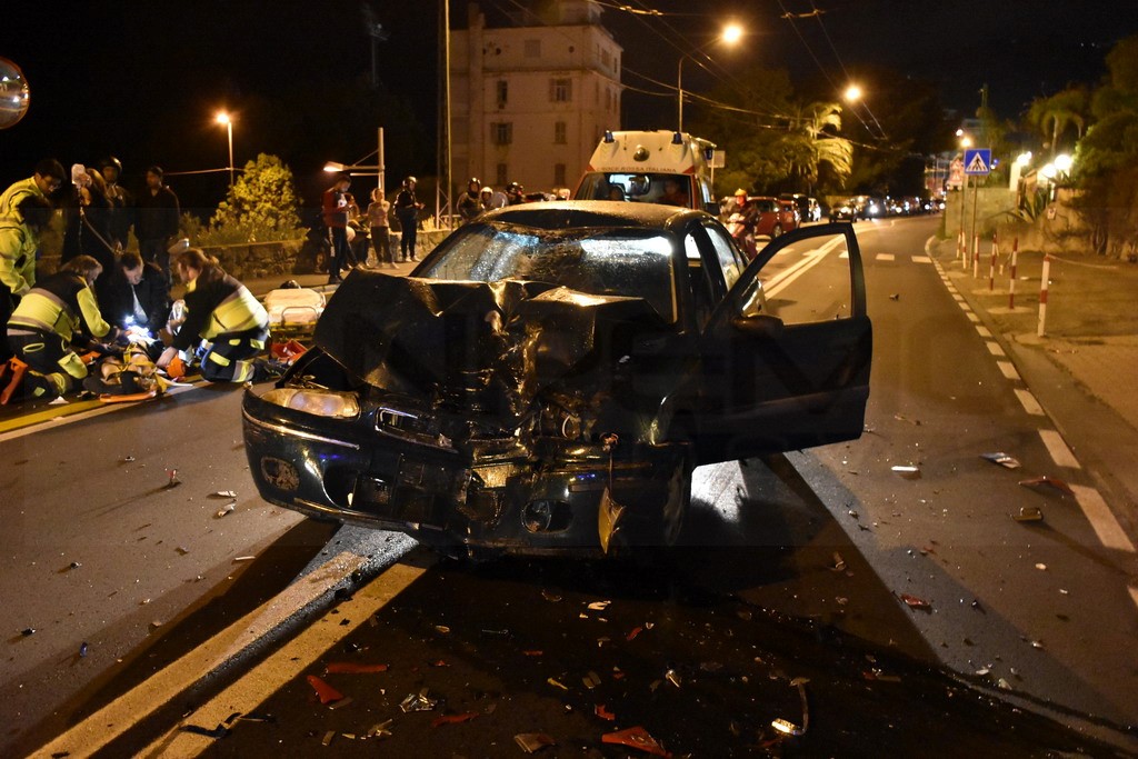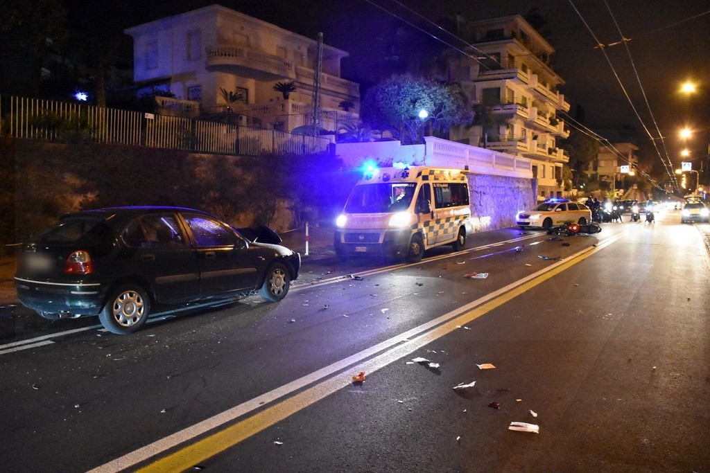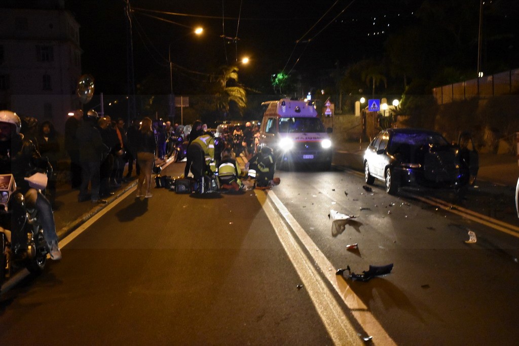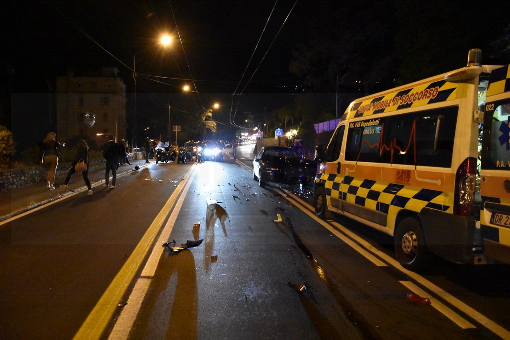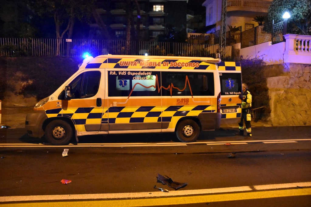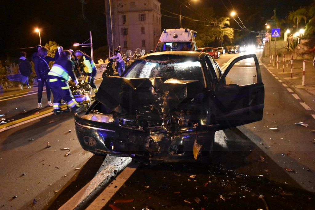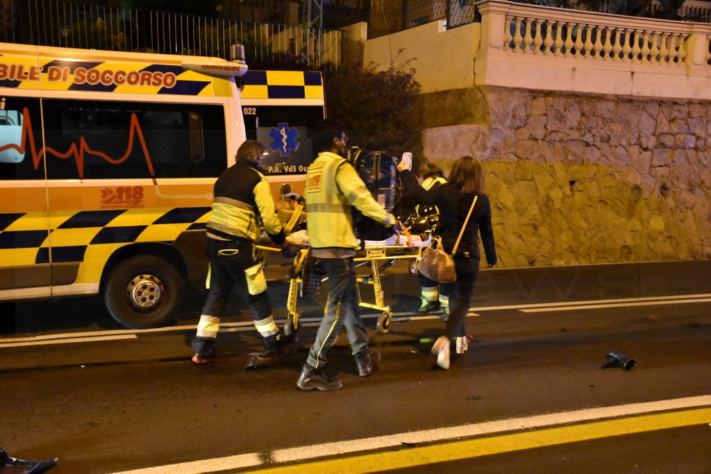 Sanremo: schianto nella notte in corso Marconi tra un'auto ed una moto, grave il centauro (Foto)