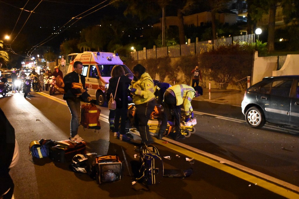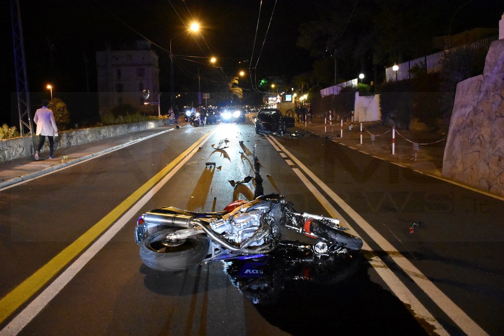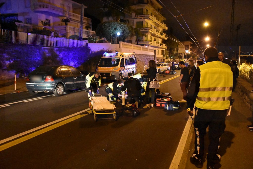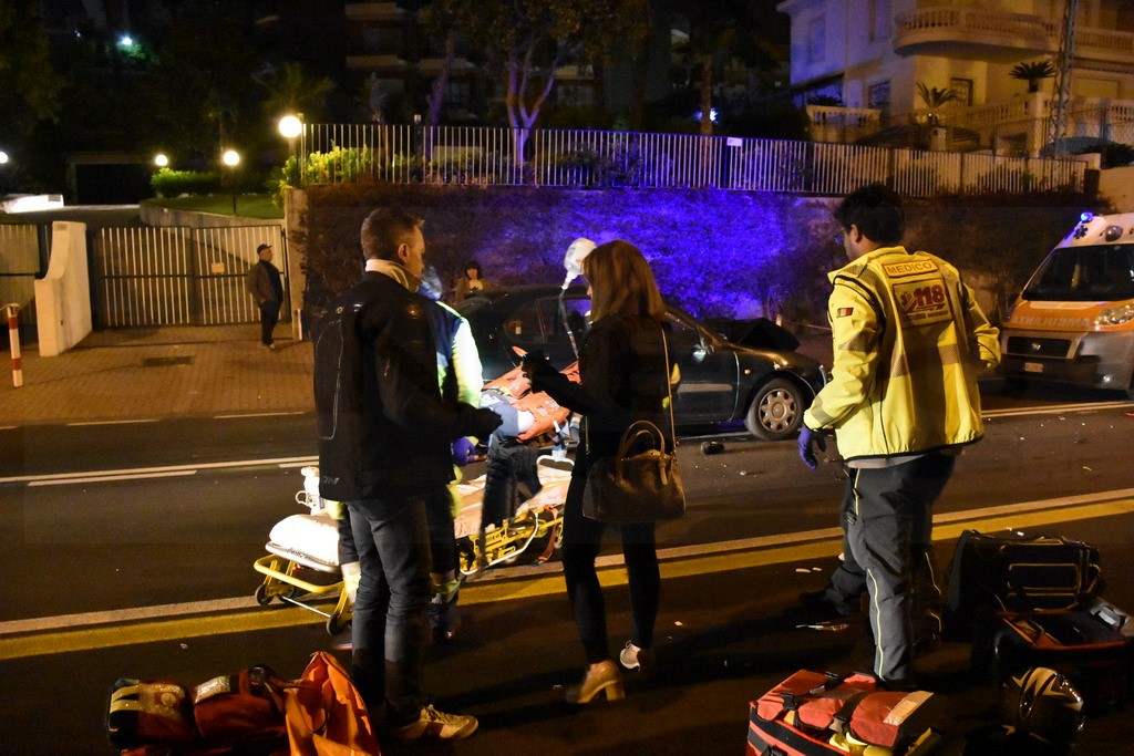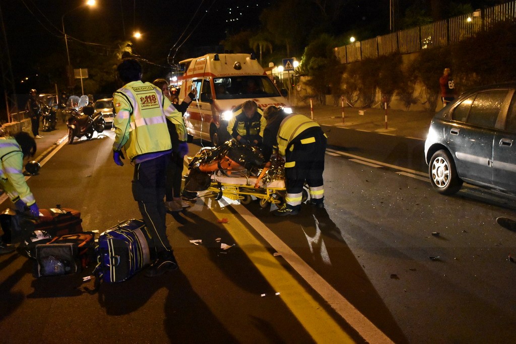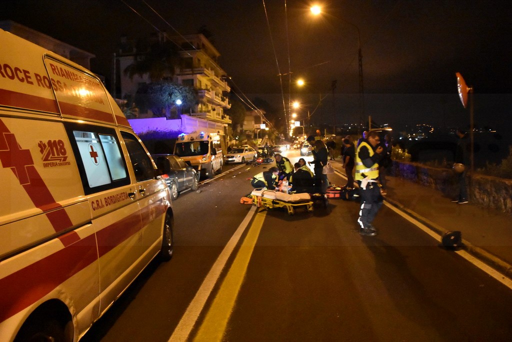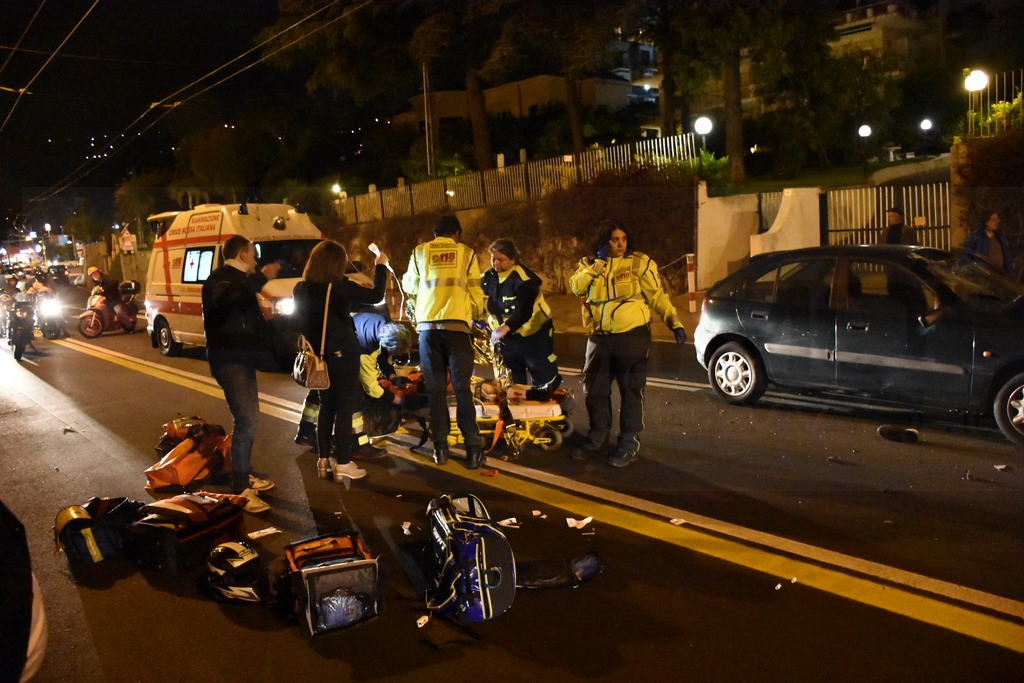 Sanremo: schianto nella notte in corso Marconi tra un'auto ed una moto, grave il centauro (Foto)
