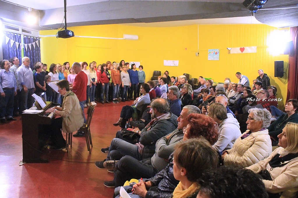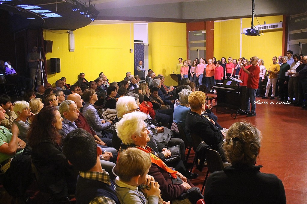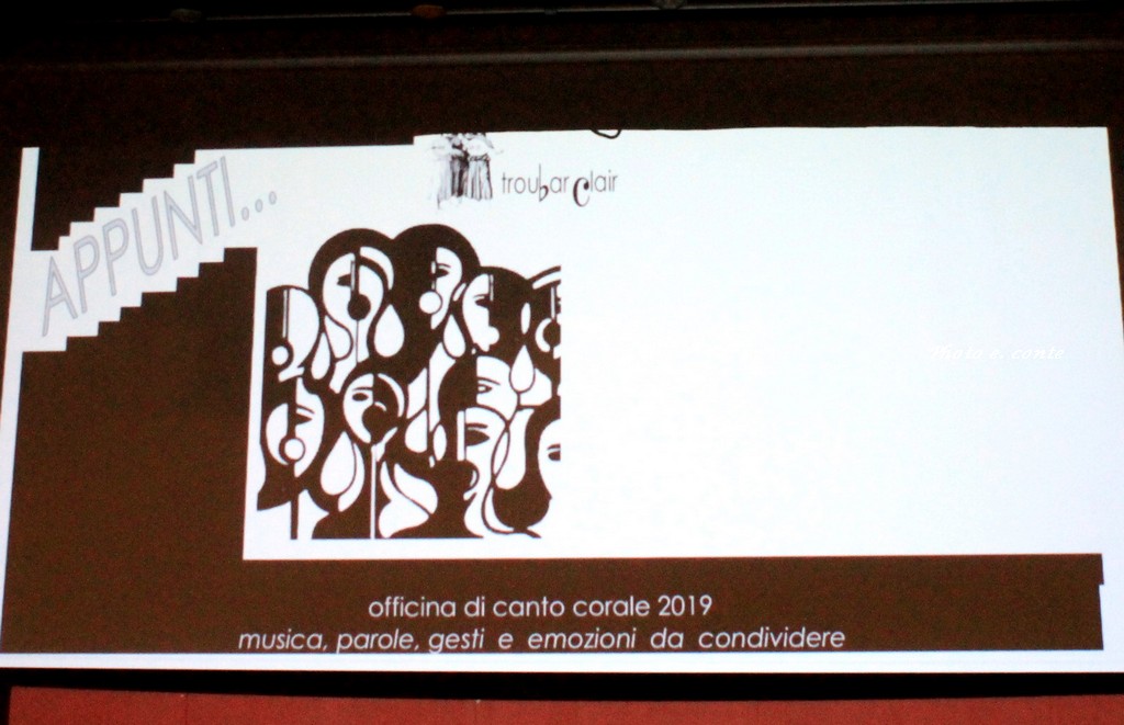 Si è concluso con il concerto finale la terza edizione dell’Officina di Canto Corale condotta da Mario Molinari. Per sette incontri settimanali i coristi, alcuni del noto coro locale Troubar Clair, che da sempre si dedica alla valorizzazione del patrimonio della polifonia vocale, hanno provato e riprovato i diversi brani, uniti semplicemente dalla volontà e dal piacere di condividere una medesima passione. Il repertorio, che ha abbracciato molte culture, dall’Ucraina al Brasile, passando per il canto dei minatori nel Nord della Francia, ha incantato il numeroso pubblico intervenuto in sala.