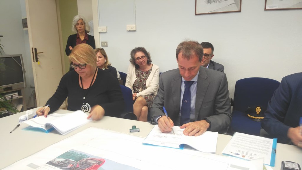 In veste di firmatari oltre al Direttore territoriale della sede INAIL di Savona e Imperia, Enrico Lanzone, per il Ministero dell’Interno, Dipartimento della Pubblica Sicurezza, Il Dirigente della Sez. Polizia Stradale di Imperia, V.Q. Agg. Gianfranco Crocco, Federico Lenti, Direttore di Tronco Autostrada dei Fiori S.p.A, Beatrice Pramaggiore, dirigente Scolastico I.I.S. Liceo Ling. –Sc. Umane Amoretti e Artistico e Riccardo Littardi, Presidente S.E.I. –C.P.T.