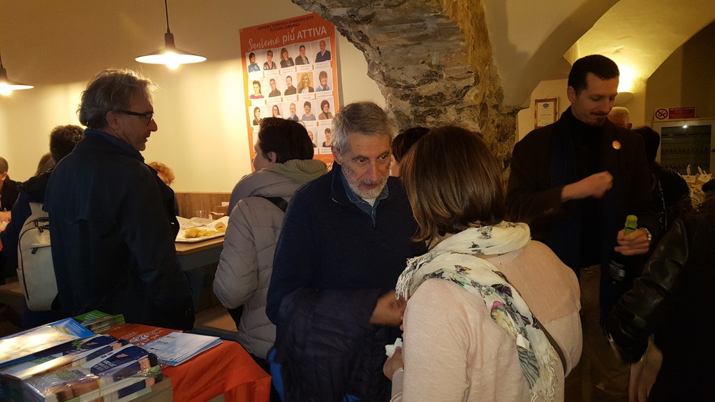 Il candidato Sindaco di Sanremo Alberto Biancheri assieme ai candidati di Sanremo Attiva Paola Silvano e Cesare Depaulis questa mattina hanno incontrato i sostenitori presso il fornaio Pastamadre.