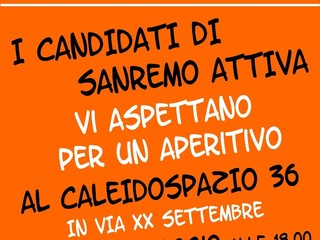 Questa sera, a partire dalle 18.30, il movimento civico “Sanremo Attiva” a sostegno del candidato sindaco Alberto Biancheri organizza una bicchierata di fine campagna elettorale presso il Caleidospazio Trentasei in via XX Settembre.