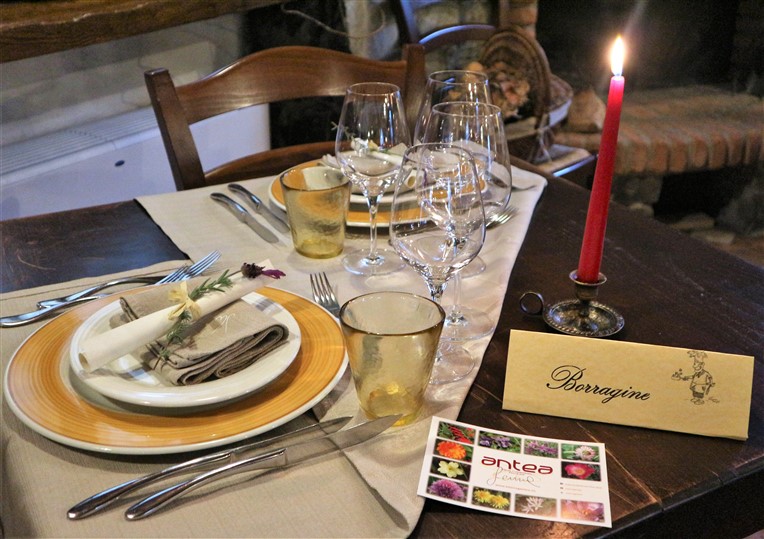 Sui tavoli piante fiorite dell'azienda Ravera Bio come scenografia della serata e allo stesso tempo omaggio per gli ospiti, che hanno ricevuto in regalo anche una copia della nuova guida de “I Ristoranti della tavolozza” e materiale divulgativo del Crea di Sanremo relativo al progetto di coltivazione di fiori eduli Antea.