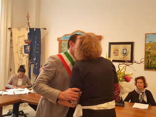 Il sindaco, Massimo Di Fazio, ha consegnato a Karin Rauer, moglie dell'artista, lo stemma del Comune per la generosità artistica che Rainer ha sempre rivolto a Triora e a tutta la valle Argentina.