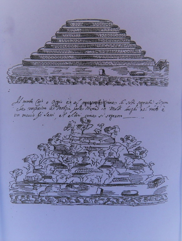 Un muro di diversi metri di altezza, realizzato con una successione di 6 muri a secco concentrici a scalare che terminano con una piattaforma quadrangolare che misura 5 metri per 6. Un’opera monumentale per certi versi anomala che in passato ha sempre attirato l’attenzione degli antiquari e degli archeologi che in varie occasioni si sono cimentati nel formulare ipotesi sulla sua funzione con un rosario di soluzioni discordanti.