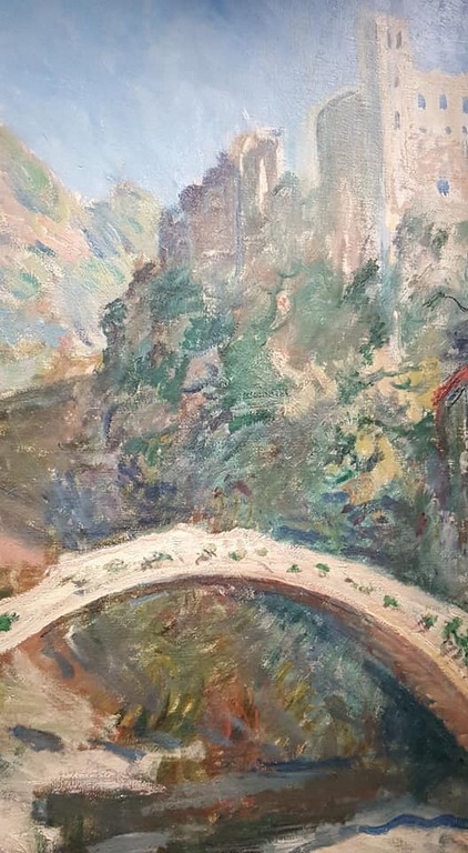 Ci ha accompagnato nelle visita Aldo Jean Herlaut, curatore della mostra: "Sono qui esposti al Castello di Dolceacqua - ha detto due quadri eccezionali di Monet. Il primo si chiama “Le Château de Dolceacqua” e fu dipinto dal celebre pittore quando decise di trasferirsi da Bordighera a Dolceacqua. Con il ponte medievale e il castello, Monet trovò due motivi conformi alla sua pittura impressionista. L'altra tela esposta “Monte Carlo vu de Roquebrune”, prestata dal Principe Alberto, è un'opera altrettanto sensazionale, che trasmette vibrazioni intense.