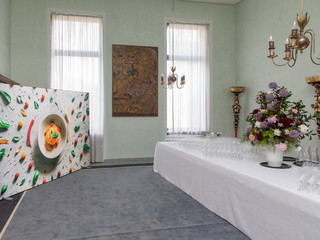 Le decorazioni si sono basate sui fiori di allium, garofano, peonia, lathyrus, corallo, diablo, myriocladus e ruscus garden del Mercato dei Fiori di Sanremo e l’allestimento è stato curato dalla floral designer Sabina di Mattia e dal coordinatore del Distretto Alessandro Lanteri. L’architettura neoclassica della sede diplomatica, la solennità dell’occasione e la presenza di numerose opere d’arte ha portato naturalmente a scegliere un allestimento tradizionale italiano di stile elegante e formale.