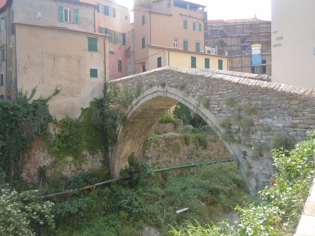 Per andare dalla parte opposta dobbiamo attraversare uno splendido ponte in pietra costruito dai Cavalieri di Malta. Questo ordine di monaci guerrieri, nel quale confluirono tra l'altro i famosi Templari dopo la sanguinosa soppressione, possedeva una sede a Porto Maurizio. Sembra che abbiano finanziato la costruzione del ponte per facilitare i propri spostamenti verso l'estremo Ponente Ligure e il Piemonte. Dolcedo infatti era anche un importante nodo viario. Si trovava su un incrocio tra la strada interna parallela alla costa e quella che portava verso le valli e i passi a nord. Oggi il complesso sistema di mulattiere sta venendo recuperato, con la possibilità di fare interessanti escursioni o pedalare in mountain bike.
