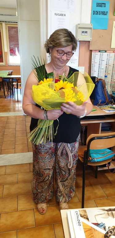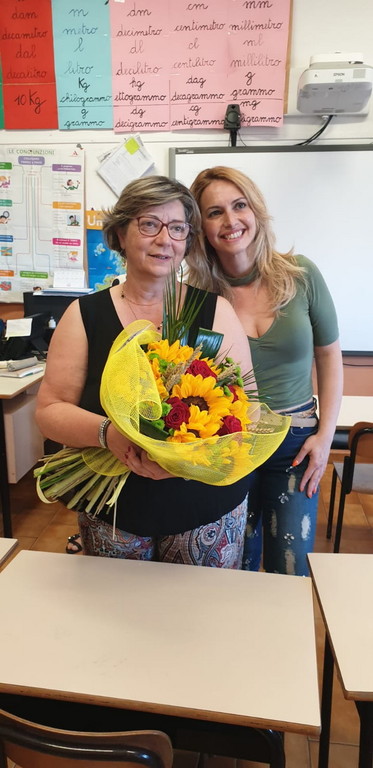 "Con gran dispiacere di tutti: alunni, colleghe, genitori… e Lei stessa. Tutti sentiremo la sua mancanza, come insegnante, ma soprattutto come persona, sempre ironica, sorridente e comprensiva. L’insegnante Gabriella ha lasciato un’impronta importante negli animi di più generazioni. Lavorare con lei è sempre stata un’esperienza intensa e 'vulcanica'. Le colleghe di Nervia le augurano di contagiare con la sua carismatica passione nuovi orizzonti".