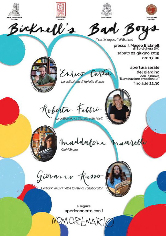 Sabato 22 giugno avrà luogo un pomeriggio dedicato alla scoperta dei tesori conservati nel Museo Bicknell e delle ricerche condotte dai giovani ricercatori che hanno animato il lungo e intenso anno del centenario inaugurato con la mostra “Clarence Bicknelll: in the past for the future. Inter-relazioni” lo scorso luglio 2018.
