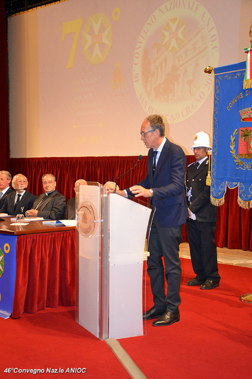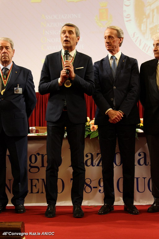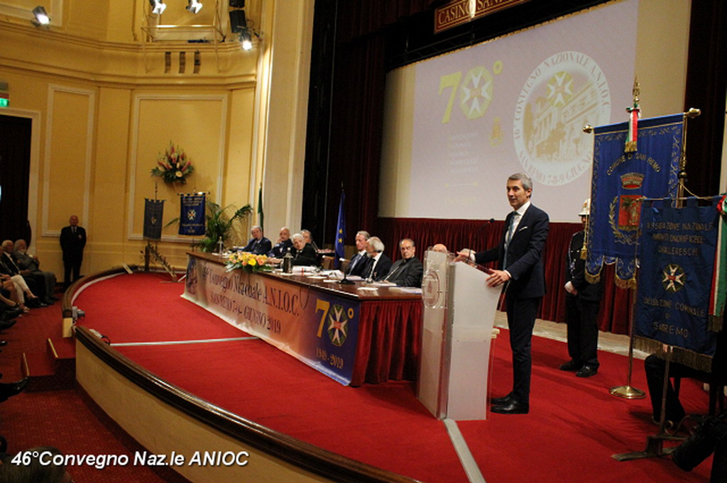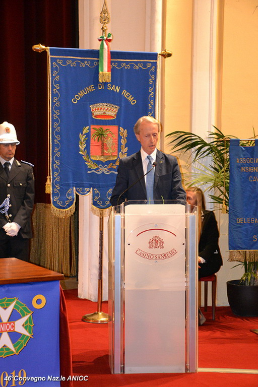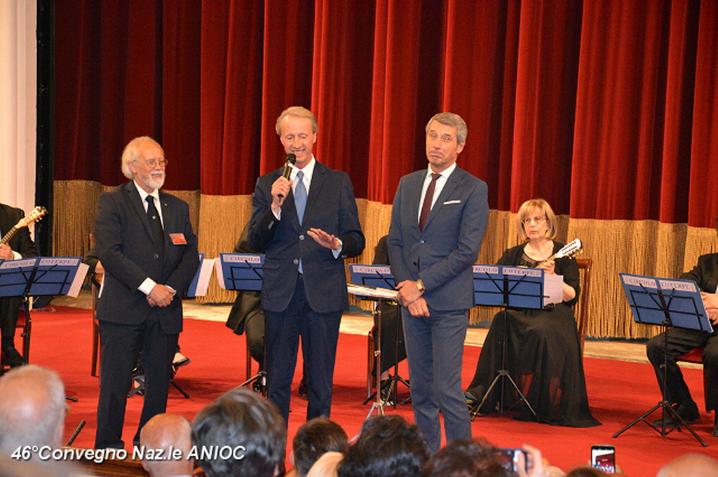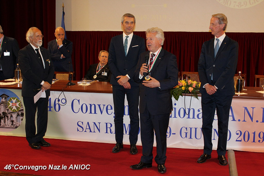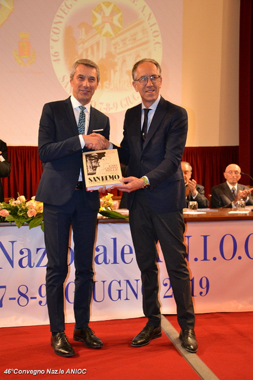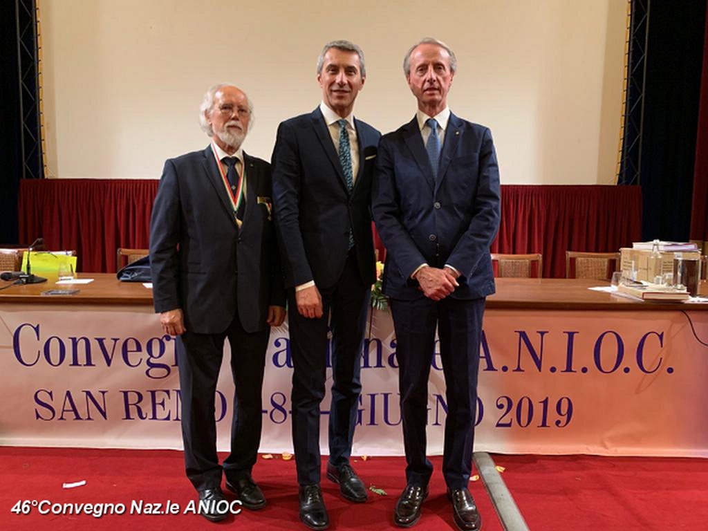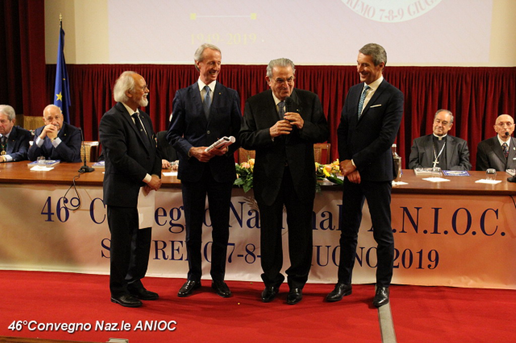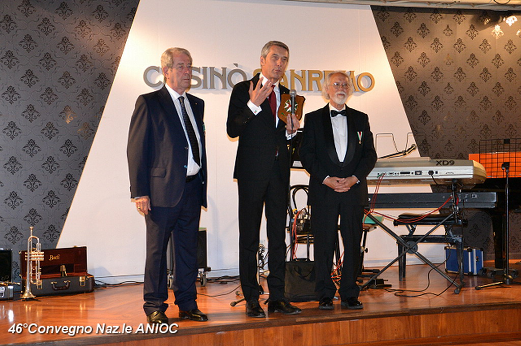 Il Sindaco di Sanremo ha portato il suo saluto a tutti i partecipanti al convegno, che ha ringraziato per aver scelto per la nona volta Sanremo, come sede congressuale, e che proprio da Sanremo nel 1973, con il suo primo congresso organizzato nella città dei fiori, aveva trovato il suo primo momento unificante a livello nazionale. Al Sindaco Alberto Biancheri è stata consegnata la tessera e il Diploma di Socio Onorario dal Presidente Sen. Antonio De Poli (Questore Anziano del Senato) e dal Segretario Generale Conte Monzani. La cerimonia è proseguita con la consegna di targhe e medaglie. Per l'occasione sono stati consegnati i diplomi di nuovo socio alla Dott.ssa Cav. Marzia Taruffi, all'ex sindaco e Presidente della Famija Sanremasca Cav. Leone Pippione, al Cav. Giampiero Vivaldi. A tutti i collaboratori che hanno affiancato il Cav. Uff. Roberto Pecchinino nell'organizzazione è stata consegnata la medaglia del 46° Convegno ANIOC.