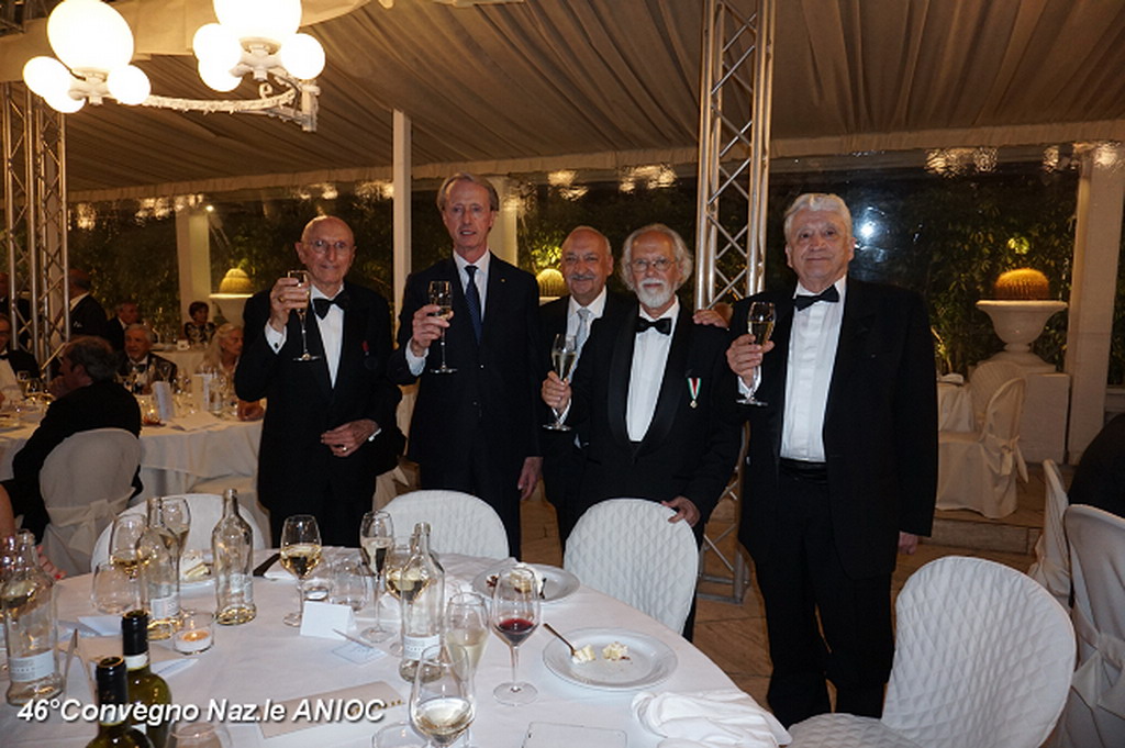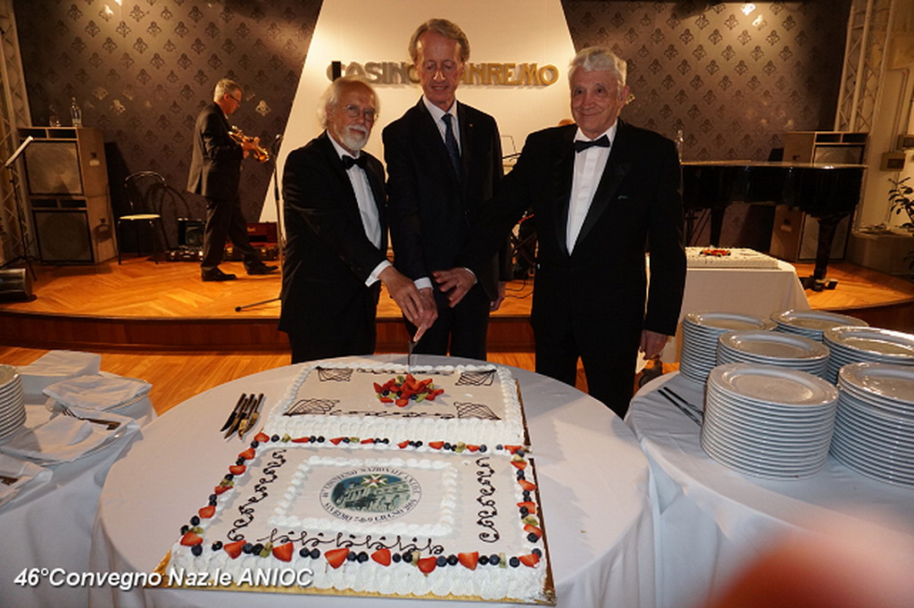 La cena di Gala, è stata organizzata nella bella sala del ristorante “Roof Garden” del Casinò. Lo splendido e professionale servizio della Elior, nuovo gestore della ristorazione del Casinò, ha contribuito al successo della manifestazione. Ha allietato la serata il bravissimo musicista Reddy Bobbio con il trombettista Franco Cocco. Il Presidente Nazionale n. Antonio De Poli, prima di congedarsi e ripartire a causa di altri impegni Istituzionali, si è congratulato per l'ottima organizzazione e per la bella e prestigiosa sala ristorante del Casinò, ed ha salutato tutti gli intervenuti che hanno partecipato alla serata di Gala. Con il taglio dell'ottima torta preparata dalla pasticceria “Tropicana” e con un brindisi, la serata si è conclusa consegnando al Coordinator della Elior, Omar Gianfranco Malagrida, una medaglia come socio benemerito dell'ANIOC.