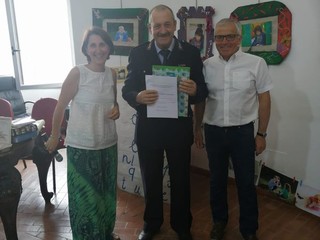 Durante la presentazione della mostra è stata consegnata una raccolta di disegni al Comandante dei vigili del paese, Piero Manassero, prossimo alla pensione e vera istituzione da oltre 40 anni. Disegni e frasi semplici, da interpretare ma sinceri e fatti con grande affetto dai bambini.