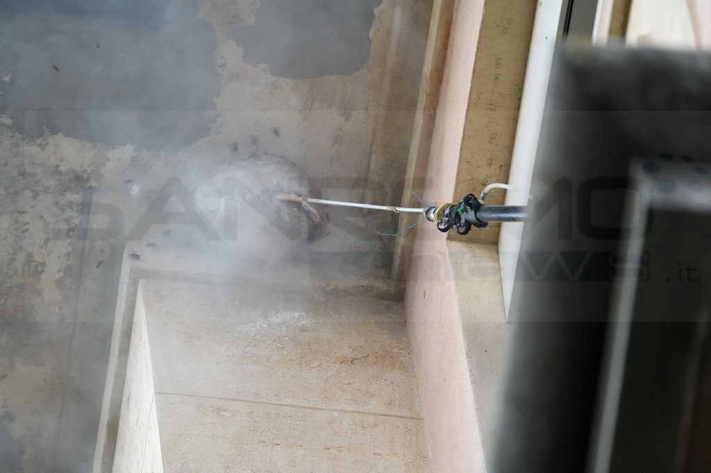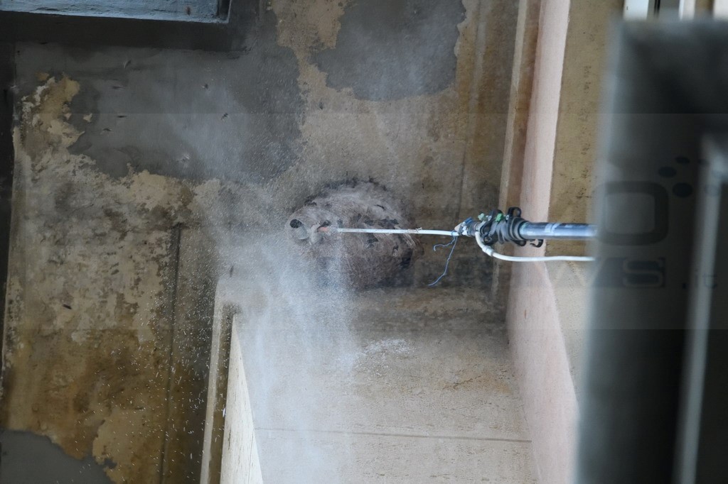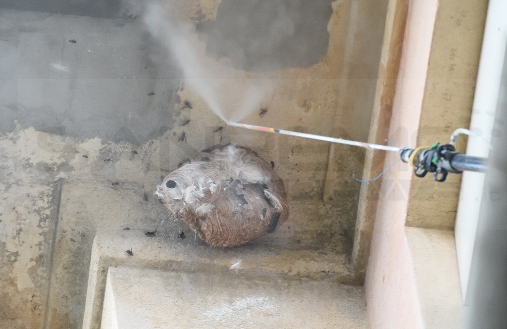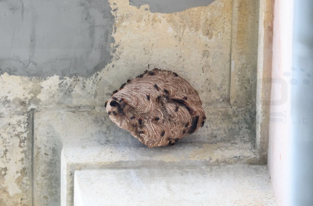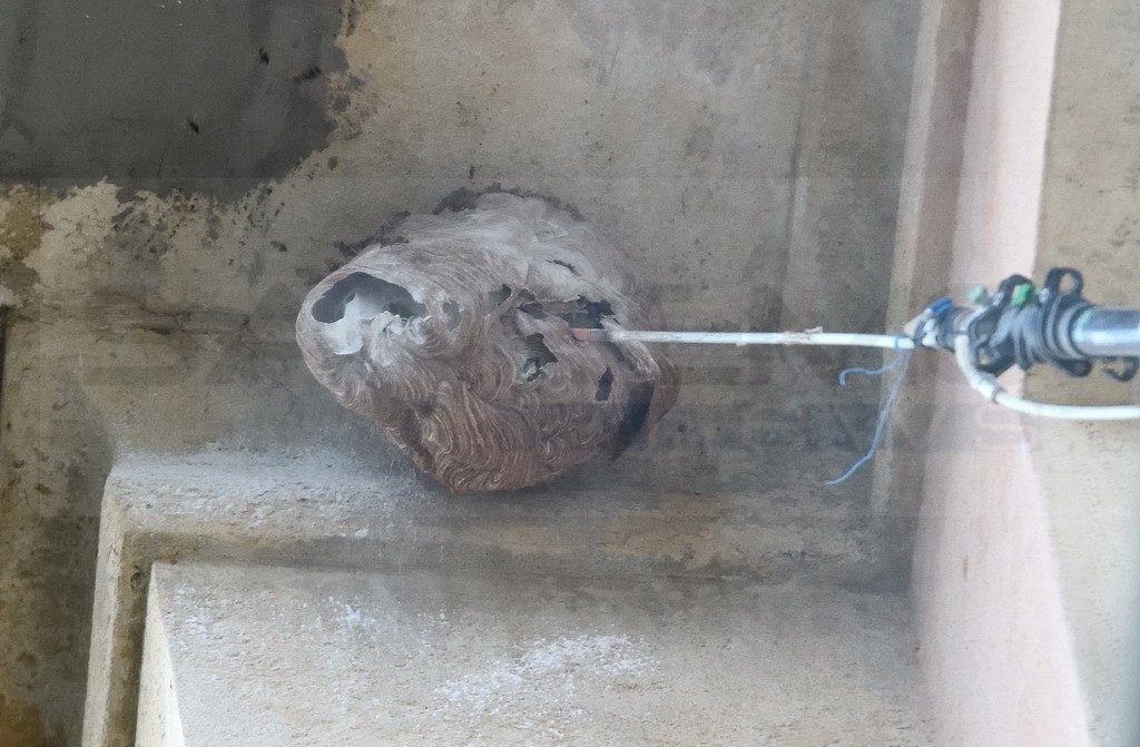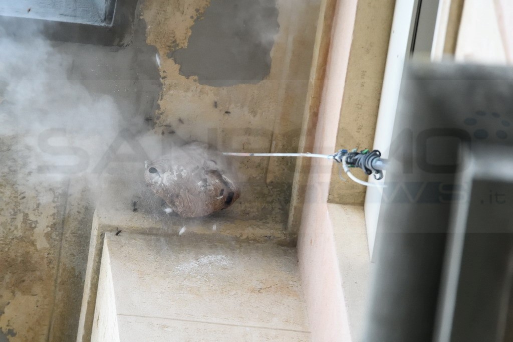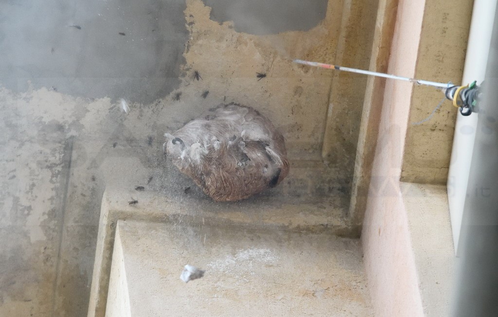 Sanremo: nido di vespe 'velutine' sotto un cornicione dell'ospedale 'Borea', ieri una task force per rimuoverlo (Foto)