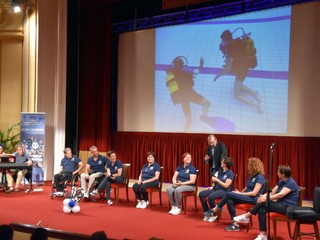Infine si è svolta l'estrazione dei biglietti vincenti della lotteria di IntegrAbili ed il cui ricavato sarà impiegato a sostegno dei progetti estivi: scuola estiva di Sanremo e campus di Imperia. Le parole del presidente Alessandra Mamino: "Questo ultimo periodo è stato molto intenso perché oltre alla consueta routine di organizzazione dei corsi sportivi, ci siamo occupati di molte iniziative per valorizzare il 10° compleanno della Polisportiva. Abbiamo voluto realizzare il libretto come segno tangibile della nostra storia come associazione. Inoltre nel periodo dal 5 all'8 giugno si è svolto un Campus per l'avviamento sportivo di persone con disabilità a seguito di infortuni sul lavoro. La realizzazione di questo progetto è avvenuta in collaborazione con INAIL e CIP. Domenica 9 giugno si è svolta la gara di nuoto per atleti FISDIR presso la piscina di Imperia, il Trofeo di Nuoto IntegrAbili alla sua 5° edizione. Lo spettacolo teatrale è il corollario dei nostri festeggiamenti, ma abbiamo ancora tantissime attività che si svilupperanno a breve termine: Domenica 23 giugno presso la piscina di Bordighera un Open Day dell'attività subacquea e attività natatorie promozionali per i bambini. Il 31 luglio IntegrAbilmente in Mare: i nostri subacquei si immergeranno con i nuclei sub di Carabinieri e Capitaneria di Porto ed inoltre attività di superficie quali vela e canoa. Il 1° luglio prenderà l'avvio a Sanremo il centro estivo "E…..state senza barriere" , mentre ad Imperia è già attivo, per i nostri ragazzi, il Campus ad indirizzo sportivo, con attività ludico ricreative ed uscite alla scoperta del territorio. A settembre ed ottobre invece saranno protagoniste le handbike con la staffetta amatoriale Insieme per lo Sport e la gara valida quale finale del Circuito Europeo Handbike. Ringraziamo tutti coloro che sostengono le nostre attività e continuano a credere in noi. Ringraziamo per l’ospitalità al Teatro dell’Opera del Casinò, il Sig.Chiuso e tutto lo staff di tecnici e del settore sicurezza. Un particolare ringraziamento a Federico Marchi presentatore d'eccezione, che è riuscito a sdrammatizzare le nostre insicurezze e resistenze a stare sul palcoscenico".