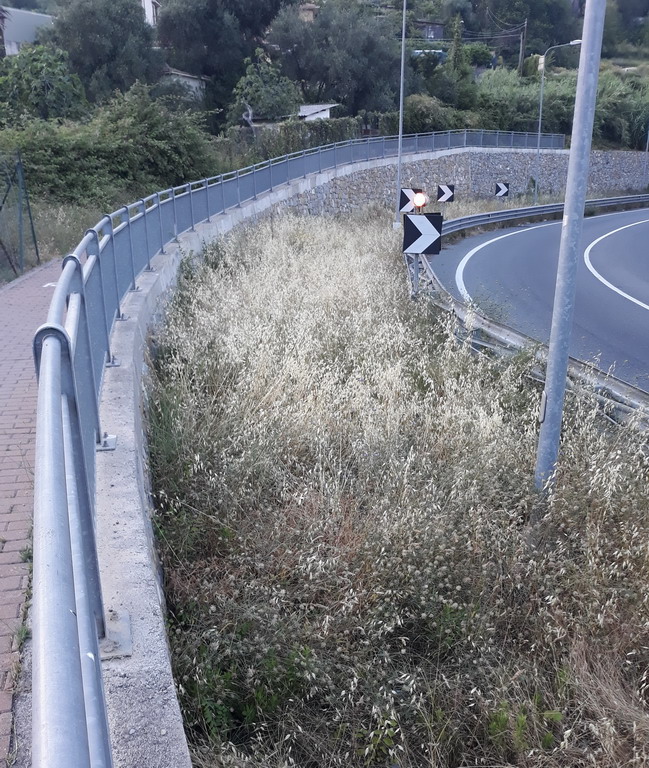 “Vorrei segnalare o stato di degrado e incuria ai bordi della carreggiata, con erba alta e persino secca, con la pericolosità che con i mozziconi di sigaretta possa incendiarsi, facendo presente che poco distante ci sono delle abitazioni”.