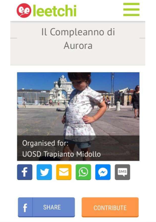 Appoggiandosi al sito internet “leetchi.com”, in poco più di un mese, la raccolta “Il Compleanno di Aurora” ha raggiunto la cifra di 2895 €, fondi utilizzati dal reparto per l’acquisto di nuovi macchinari.